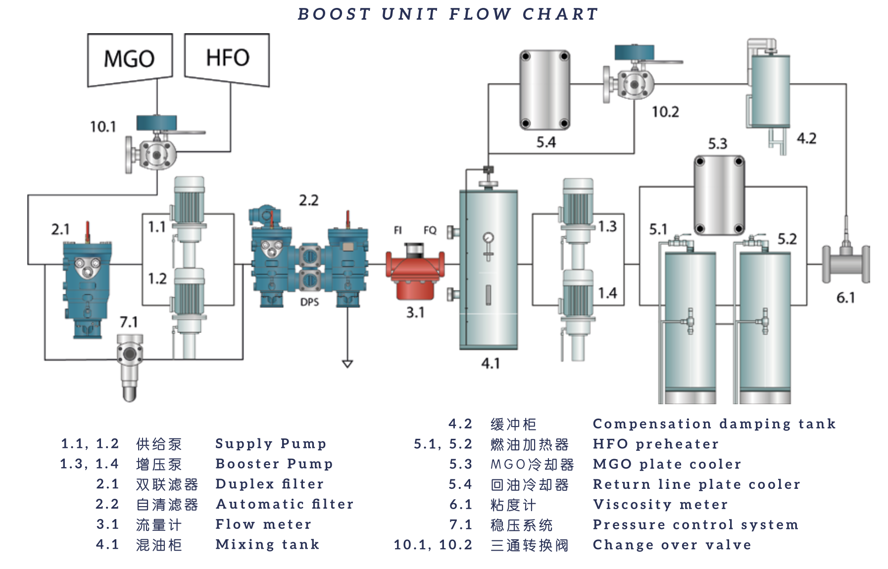 Fuel Oil Supply and Booster Module is used to supply the suitable viscosity marine fuel to main engine mainly through viscometer, viscosity controllers, heaters, pumps, filters and other components adjusting the viscosity of marine fuel to the working scope of main engine.